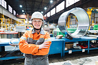 Industriemechanikerin Lisa Korolev arbeitet in der Lagerwerkstatt des Walzwerks im Bremer Stahlwerk.