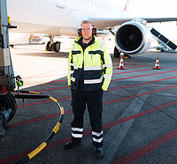 Ramp Agent Tim Rost kümmert sich um die Beladung der Flugzeuge am Flughafen Bremen.